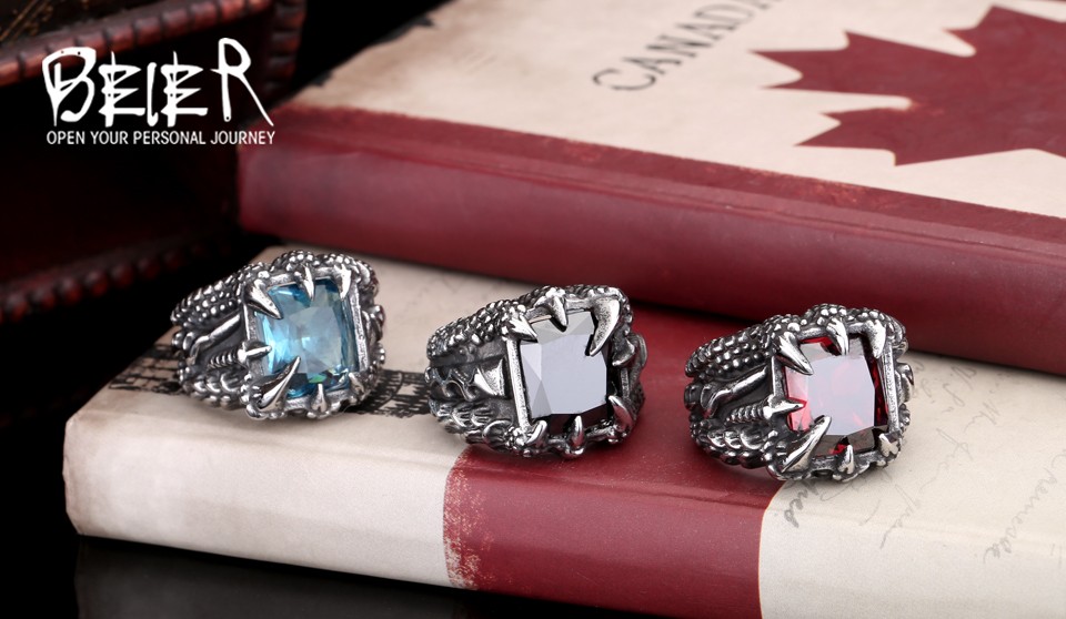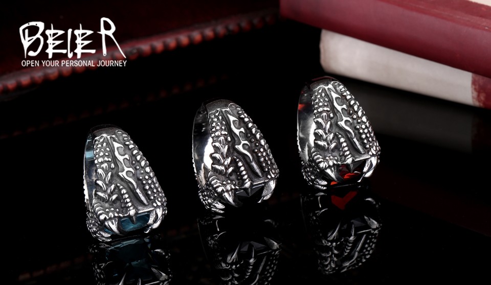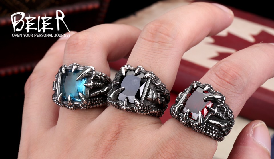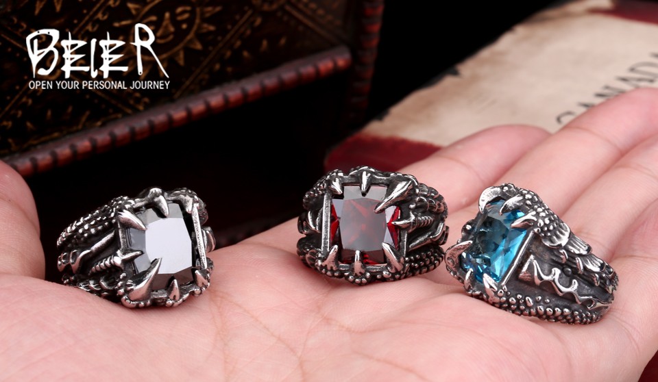 Dragon Claw Ring Red/Blue/Black Stone Stainless Steel