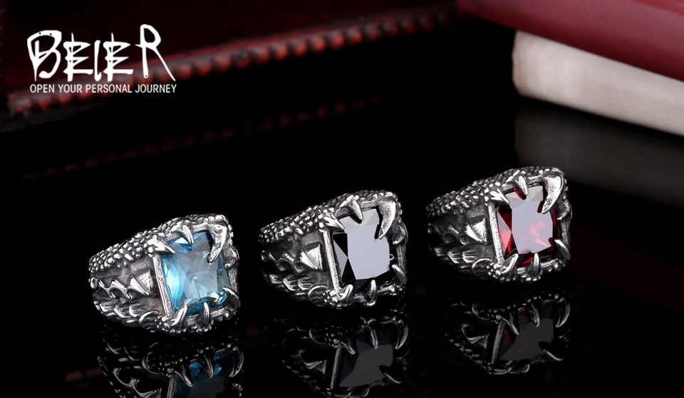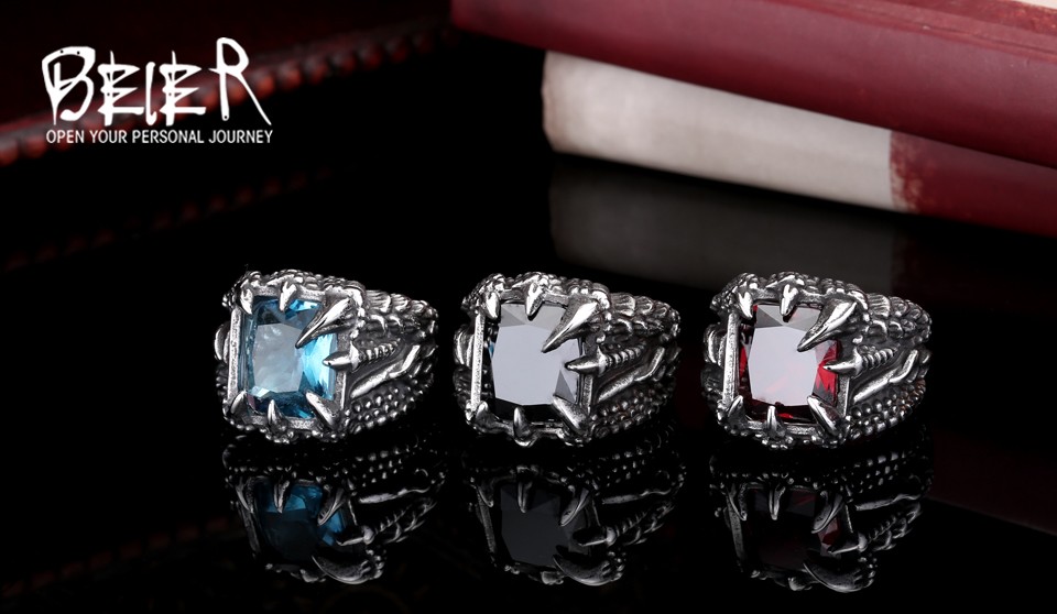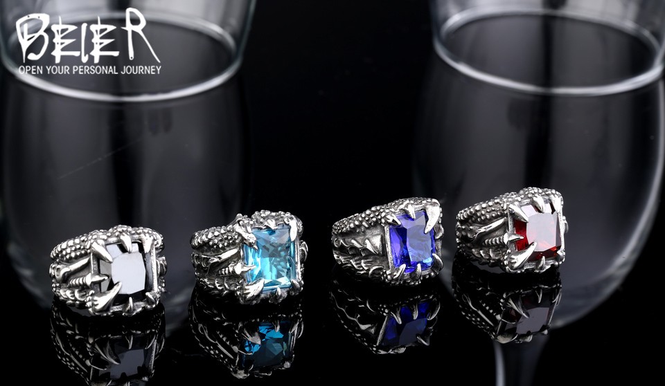 Dragon Claw Ring Red/Blue/Black Stone Stainless Steel